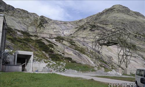 원전 폐기물 연구 시설이 들어선 이곳은 아레(Aare)산맥 정상(해발 1천600m)에서 약 500m 내려온 산 중턱(해발 1천100m) 바위 속에 위치했다.