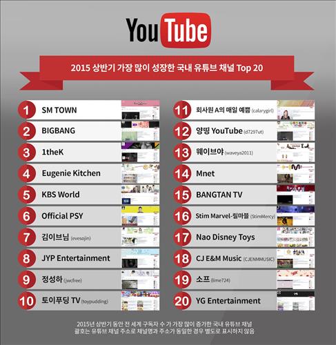 유튜브가 상반기 구독자 수가 가장 많이 증가한 채널을 집계해 7일 발표한 '상반기 가장 많이 성장한 국내 유튜브 채널 톱 20'에는 개인 크리에이터 채널이 9개(45%)나 포함됐다.