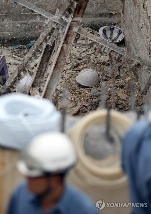 | △ 주인 잃은 안전모 (울산=연합뉴스) 김용태 기자 = 지난 3일 폭발사고가 발생해 6명이 숨진 한화케미칼 울산2공장 폐수처리장 저장조 안에 무너진 건물 잔해와 함께 주인 없는 안전모가 뒹굴고 있다. 2015.7.4 yongtae@yna.co.kr |