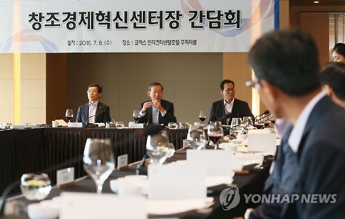 (서울=연합뉴스) 고웅석 기자 = 허창수 전경련 회장은 8일 전국 창조경제혁신센터장 17명을 초청, 혁신센터의 성공적 정착 방안을 모색하는 간담회를 했다.