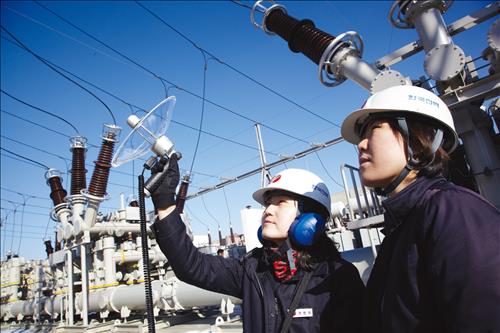 | △ 한국전력 직원이 전력설비를 점검하는 모습. |