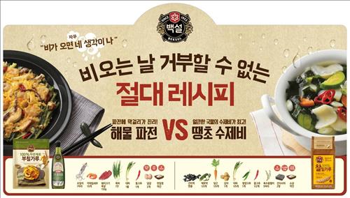 CJ제일제당은 이에 따라 장마 기간에 부침가루와 밀가루를 활용한 레시피를 제안하는 방법으로 관련 제품 판매를 극대화하겠다고 밝혔다.