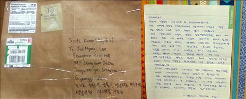 그는 편지에서 "최근 이재명 시장님 카카오스토리에서 7살 아이가 메르스로 격리 치료받았던 소식을 읽고 마음이 많이 아팠다"며 "어제 생일이었던 아들이 선물로 받은 레고 장난감을 하나 내어 놓더니 힘든 시간을 보냈을 성남의 아이에게 보내고 싶다고 했다"고 전했다.