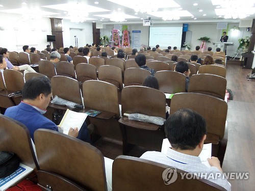 | △ '베트남 유학생을 잡아라' (김천=연합뉴스) 고현실 기자 = 9일 경북 김천대학교에서 '한국어교육기관대표자협의회 제19차 워크숍'이 열리고 있다. 연합뉴스와 김천대가 후원한 이날 워크숍은 '베트남 유학생 유치 전략과 외국인 유학생 관리 및 지원 방안'을 주제로 진행됐다. 2015.7.9 okko@yna.co.kr |