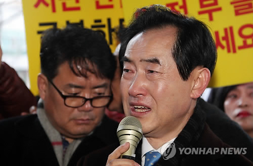 | △ 안병용 경기도 의정부시장이 지난 2월 5일 시청에 모인 지지자 앞에서 "1심의 당선무효형에 굴하지 않고 항소해 시장직을 지켜내겠다"며 눈물을 흘리고 있다. |