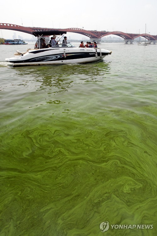 (서울=연합뉴스) 황희경 기자 = 한강 잠실수중보 하류 구간의 조류 농도가 일부 구간에서 다소 감소했으나 기준치 이하로 내려가지 않아 조류경보가 지속되고 있다.