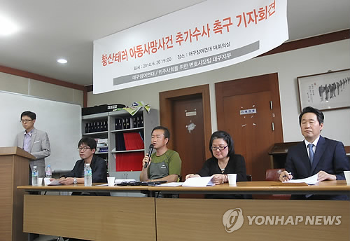 | △ '대구 어린이 황산테러' 사건의 피해자 김태완(당시 6살)군의 부모가 지난해 6월 대구 참여연대에서 기자회견을 하는 모습. (연합뉴스 자료사진) |