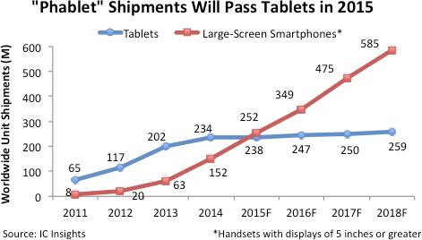 2011년부터 줄곧 앞서오던 태블릿이 패블릿에 추월을 허용하는 셈이다.