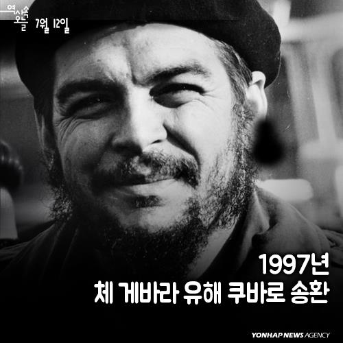 (서울=연합뉴스) 30년. 그가 '혁명의 고향'으로 돌아가는 데에는 30년이라는 시간이 필요했다. 1997년 7월12일 '전설적인 혁명가' 에르네스토 체 게바라(1928∼1967)의 유해가 쿠바로 송환됐다. 1967년 볼리비아군에 의해 사살된 체 게바라의 유해가 기나긴 혁명의 여정을 끝내고 마침내 안식처를 찾은 것이다.