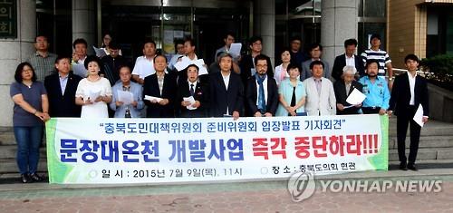 문장대 온천 개발 저지 충북도민 대책위원회 이두영 준비위원장은 "온천이 개발되고 오수가 신월천으로 방류된다면 지하수의 고갈과 수질 오염, 이에 따른 괴산 등 하류인 충북 지역의 청정 이미지 상실 등 공익적 피해가 막대하다"며 "온천 개발 백지화에 총력 대응하겠다"고 말했다.