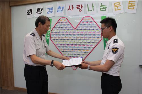 서울 중랑서, 투병중인 의경 가족 위해 헌혈증서 기증