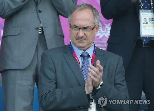 (광주=연합뉴스) 특별취재단 = 울리 슈틸리케 한국 축구 A대표팀 감독이 13일 전남 나주 공설운동장을 찾았다. 광주 하계유니버시아드 한국과 이탈리아의 축구 결승전을 관람하기 위해서다.