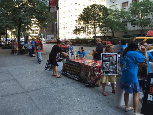 | △ 13일(현지시간) 대한민국 뉴욕총영사관 앞에서 진행된 개고기 음식 문화 반대 시위 모습.(독자 제공) |