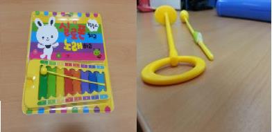 | △ 애플비북스의 실로폰 악보 완구(왼쪽)와 실로폰 채(왼쪽 사진의 오른쪽 채). <<한국소비자원 제공>> |