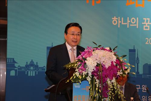 그는 "한중간 깊은 신뢰와 우의를 바탕으로 일대일로 구상과 유라시아 이니셔티브, 그리고 우리의 동북아 평화협력구상이 상호 종횡으로 연결돼 동북아 및 아시아에서 호혜와 공동의 협력 틀을 함께 꿈꾸고 그려 나갈 수 있기를 희망한다"고 말했다.