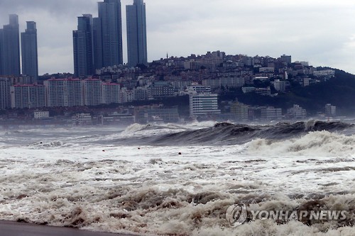 | △ 태풍 찬홈 파도 몰아치는 해운대 |