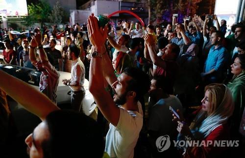 (두바이=연합뉴스) 강훈상 특파원 = 14일(현지시간) 핵협상 타결 소식이 전해지자 이란 시민들은 거리로 쏟아져나와 환호했다.