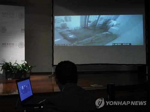 (서울=연합뉴스) 한미희 기자 = 멕시코 '마약왕' 호아킨 구스만의 탈옥 순간이 담긴 CCTV 영상이 공개됐다.
