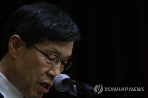 | △ 경영쇄신안 발표하는 권오준 포스코 회장 (서울=연합뉴스) 진성철 기자 = 권오준 포스코 회장이 15일 서울 여의도 한국거래소에서 개최한 기업설명회에서 경영쇄신안을 발표하고 있다. |