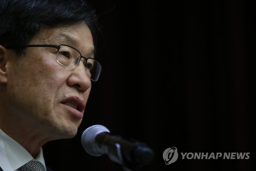 | △ 경영쇄신안 발표하는 권오준 포스코 회장 (서울=연합뉴스) 진성철 기자 = 권오준 포스코 회장이 15일 서울 여의도 한국거래소에서 개최한 기업설명회에서 경영쇄신안을 발표하고 있다. |