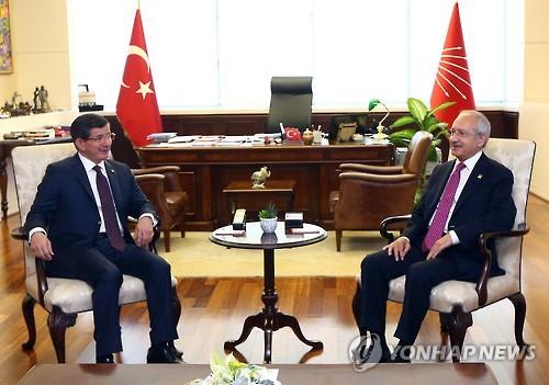 | △ (앙카라 AP=연합뉴스) 아흐메트 다부토울루 총리와 제1야당인 공화인민당 케말 클르츠다로울루 대표가 연립정부 구성을 논의하고 있다. |
