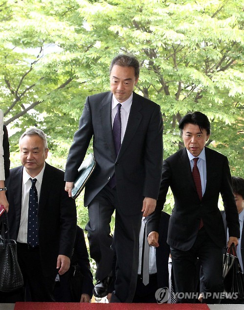 | △ 외교부청사 들어서는 신미 준(新美潤) 외무성 국제문화교류심의관 (연합뉴스.자료사진) 7월 9일 오후 서울 종로구 도렴동 외교부 청사에서 신미 준(新美潤) 일본 외무성 국제문화교류심의관 겸 스포츠담당대사가 일제 강점기 조선인 강제노동 시설이 포함된 일본 근대산업시설의 세계유산 등재 추진을 놓고 한일 2차 양자 협의를 위해 외교부 청사로 들어서는 모습. |