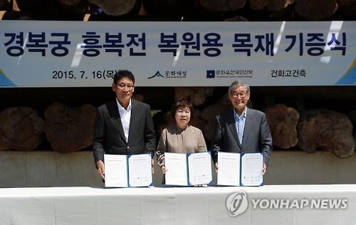 문화재청은 이번 기증을 통해 흥복전 권역에 들어갈 목재 486㎥ 가운데 14㎥를 확보했다고 설명했다.