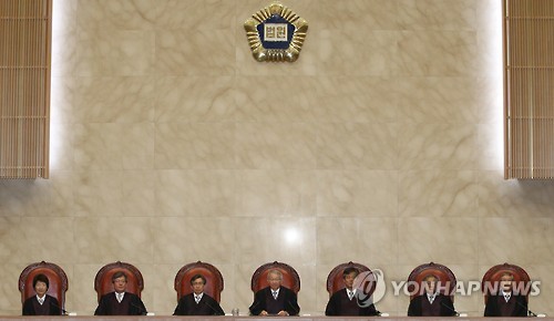 | △ '대선개입' 원세훈 최종심 대법원 전원합의체 (서울=연합뉴스) 임헌정 기자 = 양승태 대법원장을 비롯한 대법관들이 국가정보원 대선개입 혐의로 항소심에서 실형을 받은 원세훈 전 국정원장에 대한 상고심 전원합의체 선고를 위해 16일 오후 서울 서초동 대법원 대법정으로 들어선 뒤 자리에 앉아 있다. |