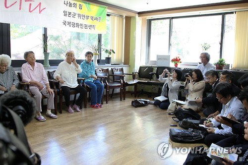 | △ 일본 언론 논설위원 17명 나눔의 집 방문…군위안부 만나 (광주=연합뉴스) 이우성 기자 = 일본군 위안부 피해 할머니들이 생활하는 경기도 광주 '나눔의 집'이 16일 일본 언론인들로 북적였다. 홋카이도신문, 이와테일보, 시나모마이니치신문 등 일본의 지방신문 15곳과 교도통신 등 16개 언론사 논설위원 17명이 나눔의 집을 찾아 위안부 피해 할머니들을 만났다. 이들은 한국 언론의 관심이 부담스럽다며 위안부 영상을 시청하는 모습과 할머니들과 간담회 자리를 각각 2∼3분 정도 공개하고 예정된 일정을 진행했다. |