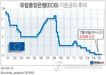 이로써 ECB는 지난해 9월 기준금리를 0.15%에서 0.05%로 내리고 나서 이번까지 연속 10개월째 동결했다.