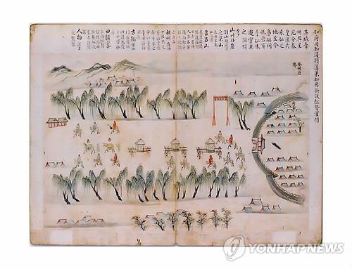 | △ (선양=연합뉴스) 홍창진 특파원 = 임기중 동국대 명예교수는 17일 중국 선양에서 열린 제2회 한중 사행단 문화축제 국제학술포럼에서 연행록(조선시대 중국으로 파견된 사신이나 수행원의 기행문)의 유네스코 세계기록유산 등재 신청 필요성을 주장했다. 사진은 조선 시대 사신이 바닷길로 중국에 가는 여정을 그림으로 표현한 '제항승람'의 한 페이지로 임 명예교수가 2013년 펴낸 '연행록 총간 증보판'에 수록됐다. (연합뉴스 DB) realism@yna.co.kr |
