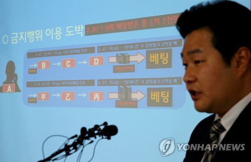전 감독 측은 2월20일 6.5점차 이상으로 KT가 패배하는 쪽에 총 3억원을 베팅해 1.9배인 5억 7천만원을 배당받았다. 또 이 돈을 27일 경기에서는 6.5점차 이상으로 패배하는 데 고스란히 다시 걸었으나 점수차가 5점차에 그치면서 돈을 모두 잃었다.
