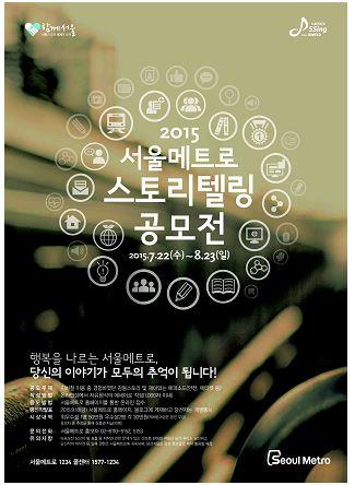 (서울=연합뉴스) 황희경 기자 = 서울지하철 1∼4호선을 운영하는 서울메트로는 지하철 이용 중에 겪은 훈훈한 이야기 등 지하철과 관련된 이야기를 공모한다고 22일 밝혔다.