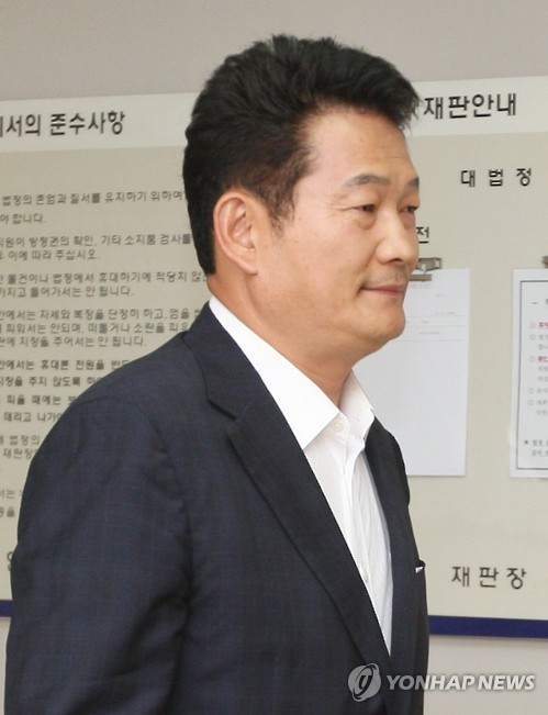 (인천=연합뉴스) 손현규 기자 = 지난해 6·4 지방선거에서 낙선한 뒤 중국으로 유학을 떠났던 송영길 전 인천시장이 귀국해 자신을 비방하는 내용의 메시지를 유포한 사건의 증인으로 법정에 섰다.