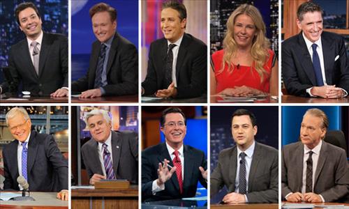 심야 토크쇼의 '전설' 자니 카슨에서부터 제이 레노, 최근 은퇴한 데이비드 레터먼은 날카로운 정치 풍자로 프로그램 시청률을 이끌었다.