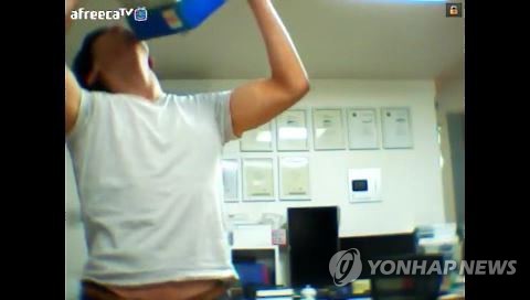 | △ A씨가 인터넷 방송인 아프리카TV를 통해 제자 D(29)씨를 나무라며 A4용지를 들고 있게 하는 벌을 주고 있다. |
