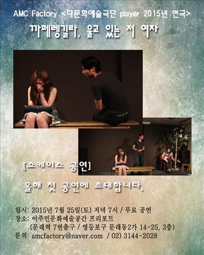 (서울=연합뉴스) 고현실 기자 = 다문화예술극단 플레이어(player)가 오는 25일 오후 7시 영등포구 문래동 이주민문화예술공간 프리포트에서 창작극 '까페 렝길라, 울고 있는 저 여자'(연출 이용의)를 처음으로 무대에 올린다.