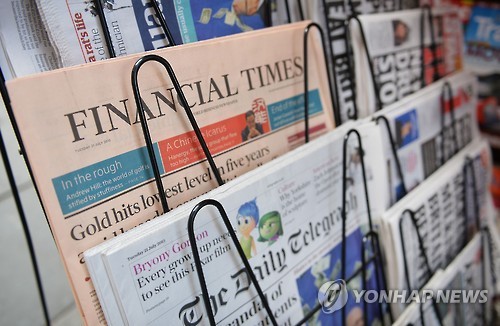 | △ 23일(현지시간) 영국 런던의 한 신문 판매대에 파이낸셜타임스가 진열돼 있다. (AP=연합뉴스) |