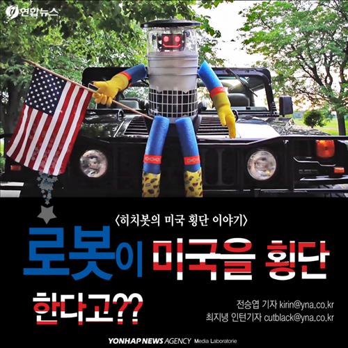(서울=연합뉴스) 전승엽 기자·최지녕 인턴기자 = 캐나다 교수 2명이 제작한 휴머노이드(인간형) 로봇 히치봇. 사람들과 간단한 대화를 할 수 있지만 스스로 움직일 수는 없다는데요. 이 로봇이 미국 횡단 여행에 도전했습니다.