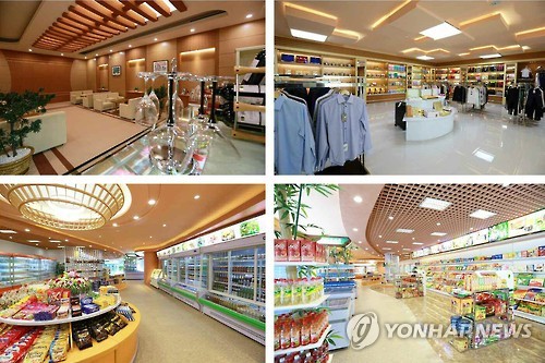 | △ 북한 평양국제공항 신청사…'세련된' 실내 눈길 (서울=연합뉴스) 북한은 25일 노동신문을 통해 다음달 1일 준공식을 하는 평양 순안국제공항 제2청사의 내외부를 공개했다. 김정은 국방위원회 제1위원장이 '평양의 관문'으로 지정해 지난해 시찰에서 재설계를 지시하는 등 각별히 챙긴 공항은 면세점과 식당 등 각종 편의시설을 갖췄다. 사진은 영업을 준비 중인 음식점, 옷 가게 등의 모습으로 세련된 실내장식과 상품 배열이 선진국 공항 못지 않은 모습이다. 2015.6.25 nkphoto@yna.co.kr |