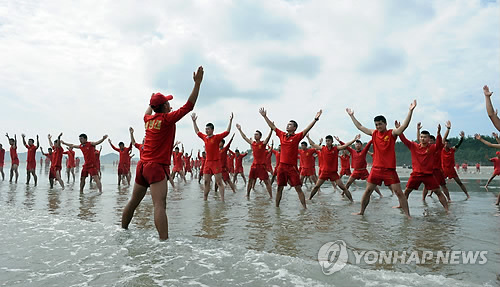 | △ 폭염 속 전투수영 훈련 중인 해병대원들 (연합뉴스 자료사진) |