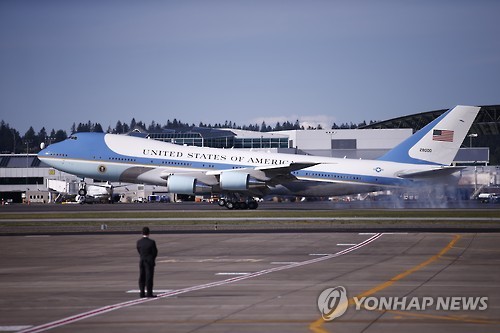 | △ Airforce One with President Barack Obama onboard arrives at the Portland International Airport, Thursday, May 7, 2015, in Portland, Ore. Obama arrived in Portland for a two-day visit to raise money for Democrats and to highlight trade. (Bruce Ely/The Oregonian via AP) MAGS OUT; TV OUT; NO LOCAL INTERNET; THE MERCURY OUT; WILLAMETTE WEEK OUT; PAMPLIN MEDIA GROUP OUT |