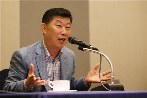 (평창=연합뉴스) 고웅석 기자 = 김홍국 하림그룹 회장은 지난달 인수한 해운회사 팬오션[028670]에 곡물사업부를 둬서 미래산업인 곡물사업을 본격화할 계획이라고 밝혔다.