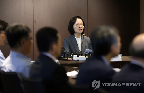 | △ 메르스 민관 종합대응TF 회의 (서울=연합뉴스) 박동주 기자 = 27일 오전 서울 중구 플라자호텔에서 열린 중동호흡기증후군(메르스) 민관 종합대응TF 회의에서 장옥주 보건복지부 차관이 모두발언하고 있다. |