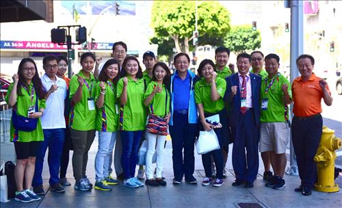 | △ 24일(현지시간) 미국 LA에서 김영목 한국국제협력단 이사장과 직원은 '2015 LA 스페셜올림픽'에 파견된 봉사단원들을 만나 활동을 격려했다. |