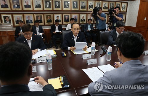 | △ 국무조정실 주파수심의위원회 (서울=연합뉴스) 전수영 기자 = '황금 주파수'로 불리는 700㎒ 대역(698∼806㎒) 분배 안 심의를 위한 국무조정실 주파수심의위원회가 27일 오전 정부서울청사에서 열렸다. 추경호 국무조정실장이 회의를 주재해 모두발언을 하고 있다. |