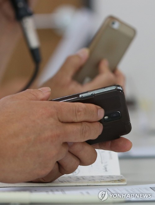| △ 국정원 불법해킹사찰 대응 국민고발! (서울=연합뉴스) 임헌정 기자 = 27일 서울 서초동 민주사회를위한변호사모임 사무실에서 열린 '국가정보원 불법해킹사찰 대응 국민고발운동 선포 기자회견'에서 이종회 진보네트워크센터 대표와, 박석운 한국진보연대 공동대표가 발언 도중 휴대전화를 만지고 있다. 2015.7.27 kane@yna.co.kr |