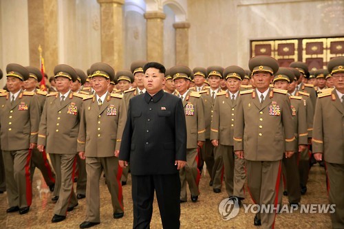 | △ 전승절 맞아 금수산태양궁전 참배하는 북한 김정은 (평양 조선중앙통신=연합뉴스) 북한 조선중앙통신은 김정은 북한 국방위원회 제1위원장이 정전협정 체결 62주년인 27일 0시 김일성 주석과 김정일 국방위원장의 시신이 안치된 금수산태양궁전을 참배했다고 27일 보도했다. photo@yna.co.kr |
