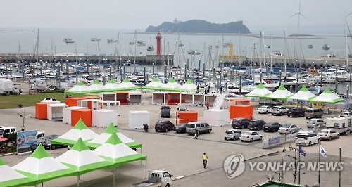 | △ 화성해양페스티벌 D-3…행사준비 한창 (화성=연합뉴스) 2015 화성해양페스티벌 개막을 3일 앞둔 27일 화성시가 주 행사장인 전곡항에서 행사시설물 설치작업을 하고 있다. 2015.7.27 <<화성시 제공>> hedgehog@yna.co.kr |