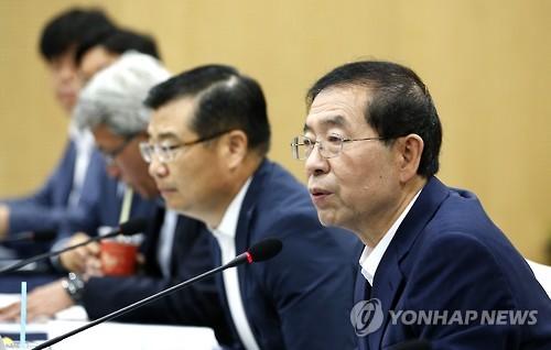 | △ 서울시, 메르스 이후의 경제-관광 회복 논의 (서울=연합뉴스) 황광모 기자 = 박원순 서울시장이 28일 오전 서울시청에서 열린 중동호흡기증후군(메르스) 이후 서울경게 조기 회복을 위한' 서울시-관광업계-경제계' 합동 간담회에서 인사말을 하고 있다. |